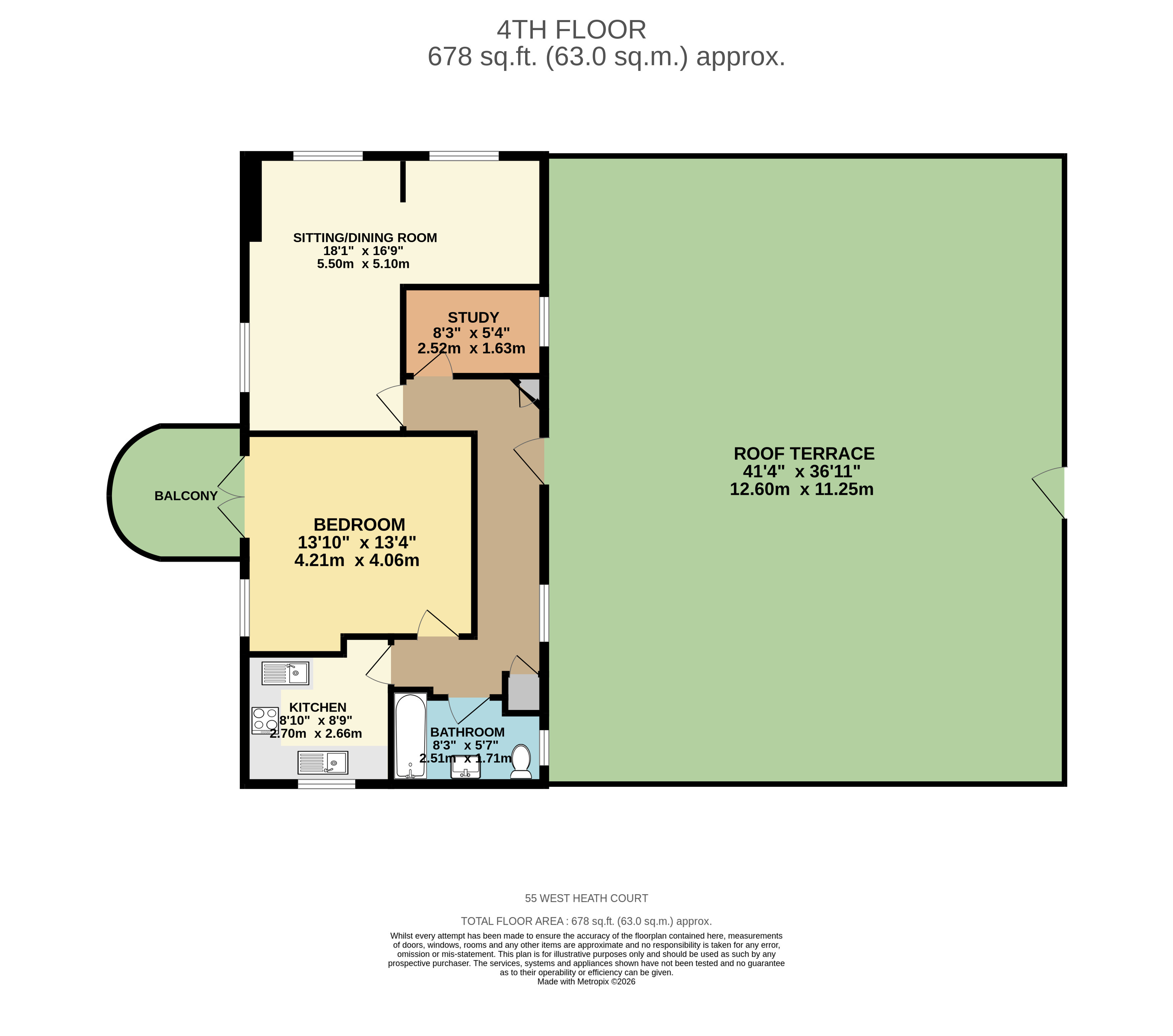 The bedroom is a well-proportioned double, offering ample room for storage and furnishings. A modern bathroom is conveniently located off the hallway and finished to a good standard. An added benefit is a huge private terrace.